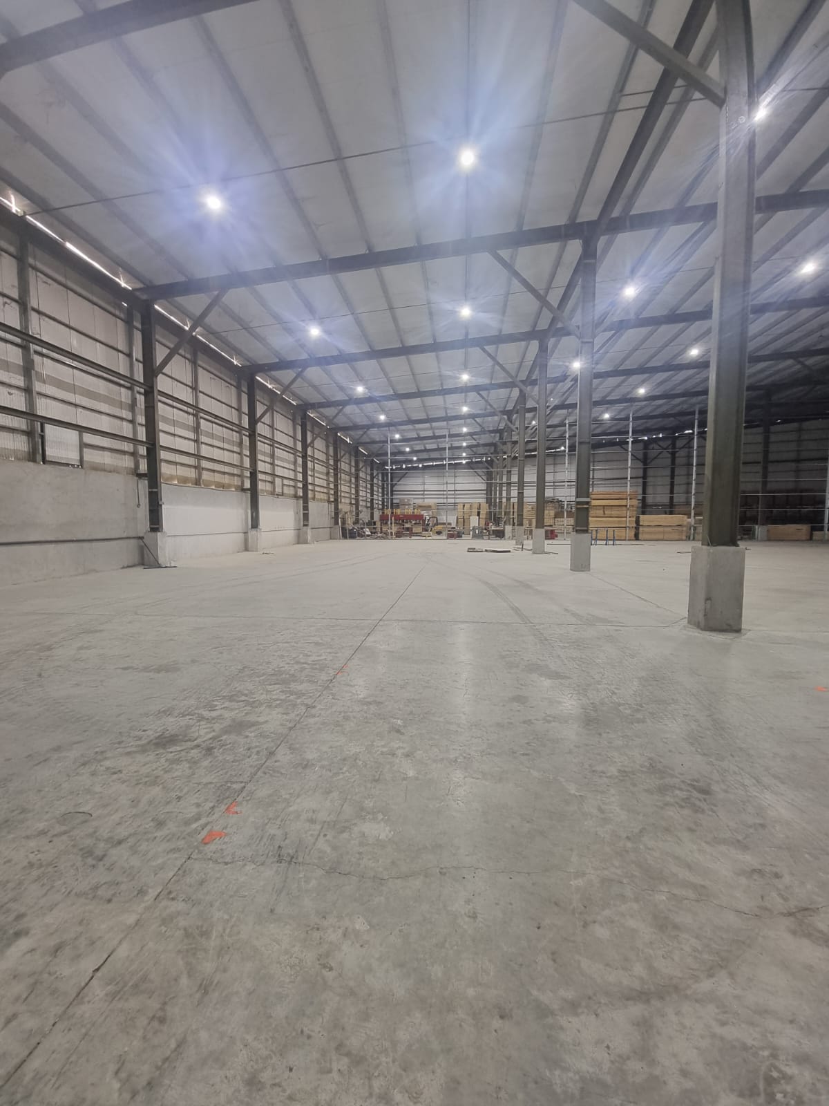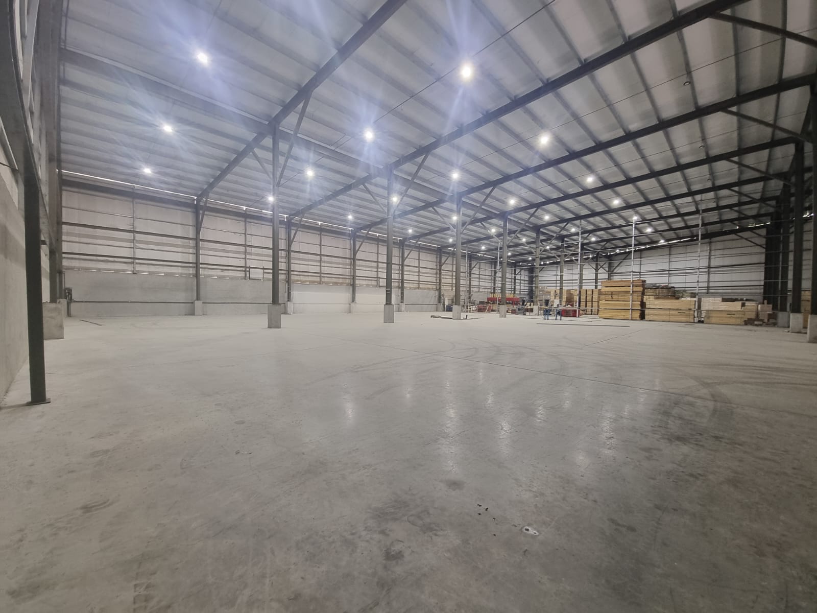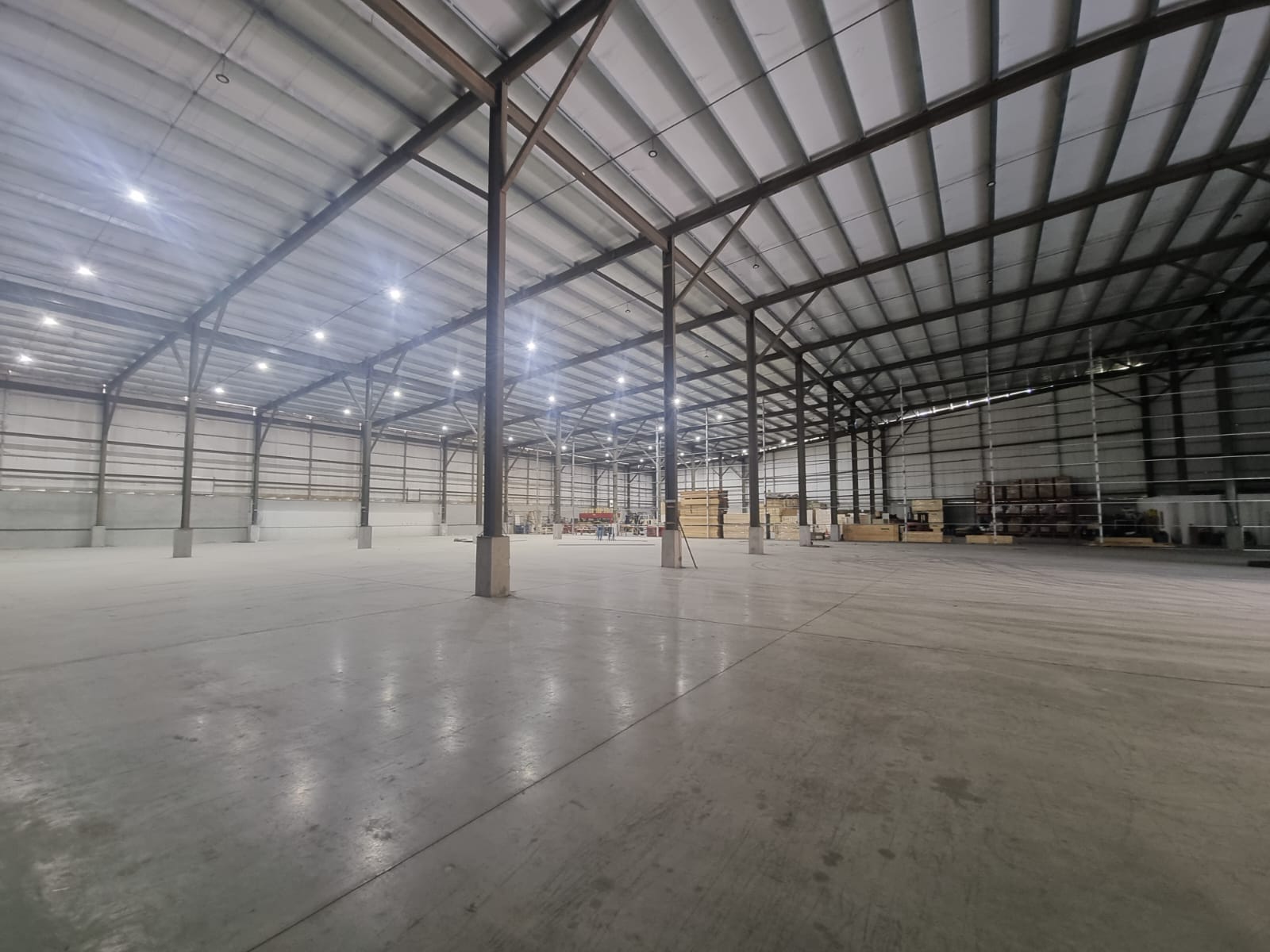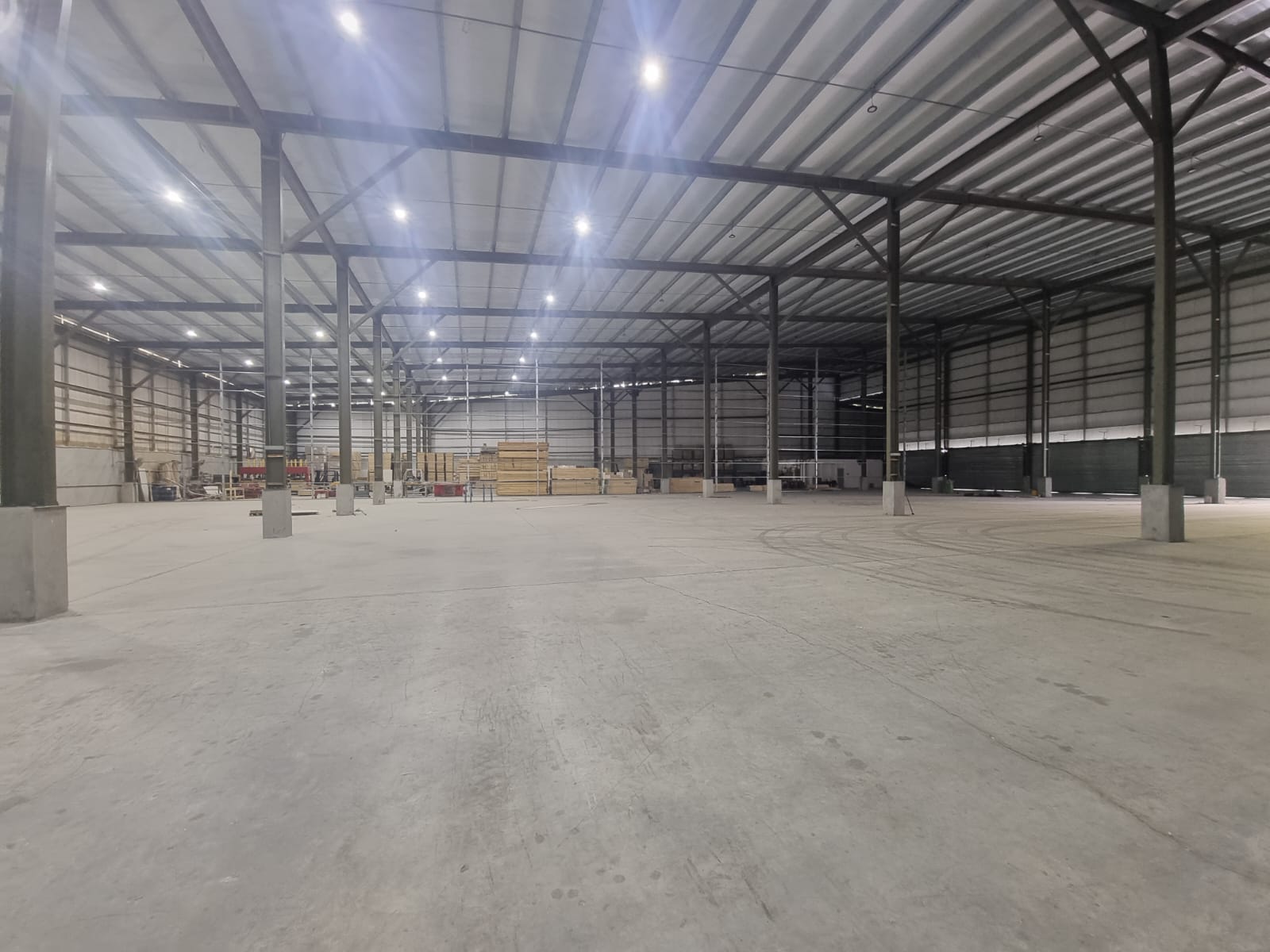 In addition to good natural lighting, the warehouse has a lighting system.