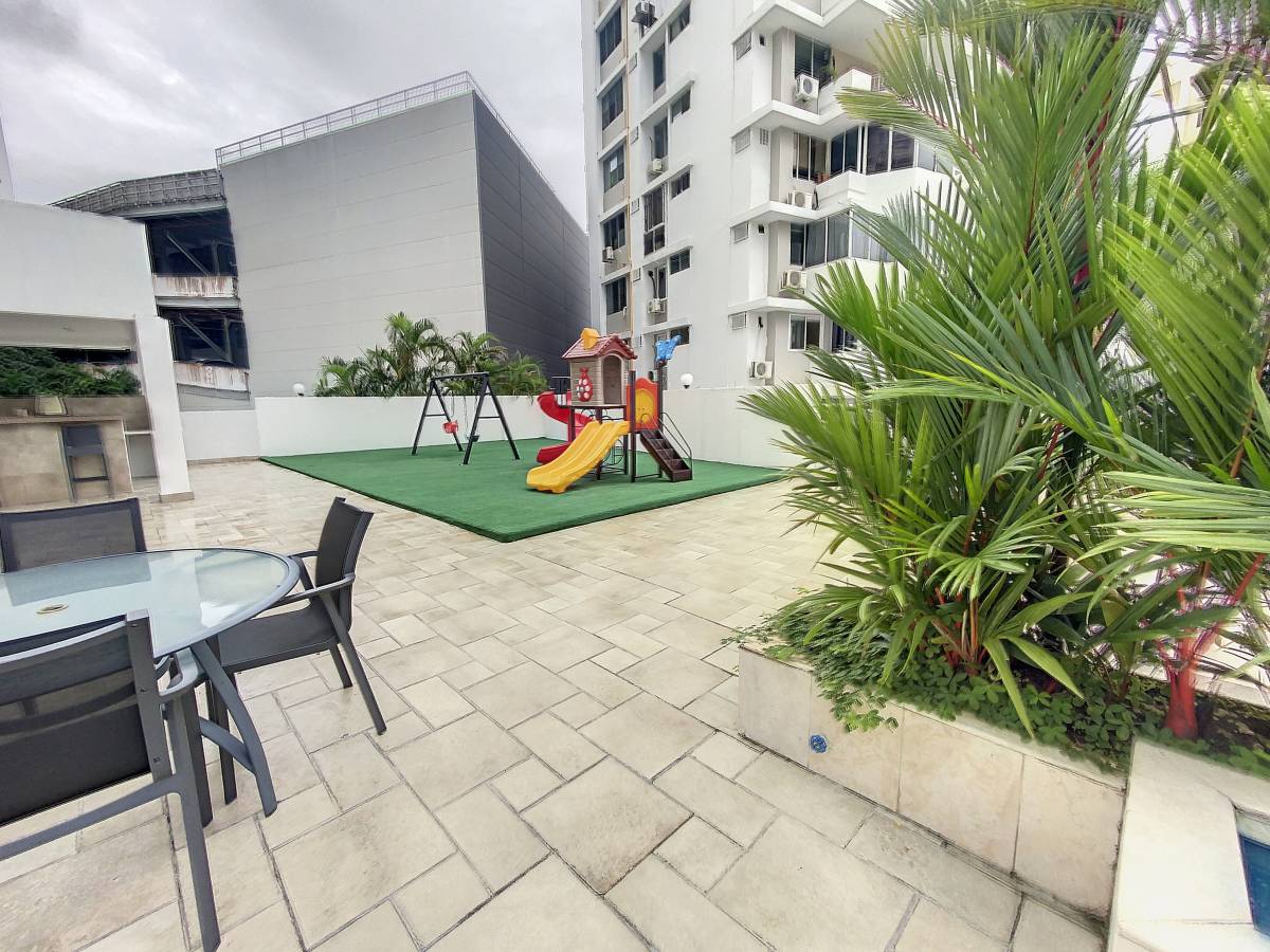 • Social area with pool, gym, playground, and event room
