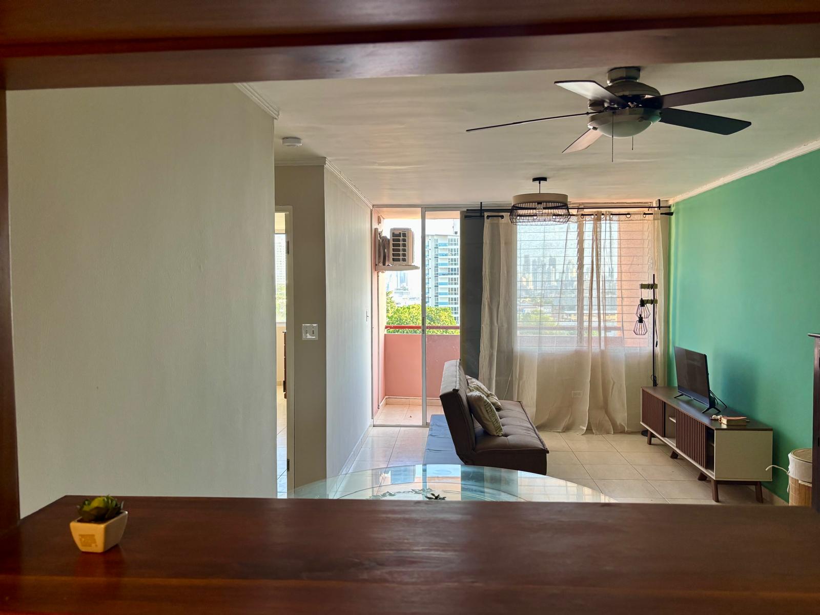 - Sala, comedor, cocina, lavandería, balcón con bella vista a la ciudad.